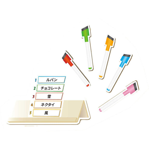 他のプレイヤーは回答者がヒミツの言葉を推理しやすいようなヒントを1つずつ考え、こっそり自分のイーゼルに記入します。